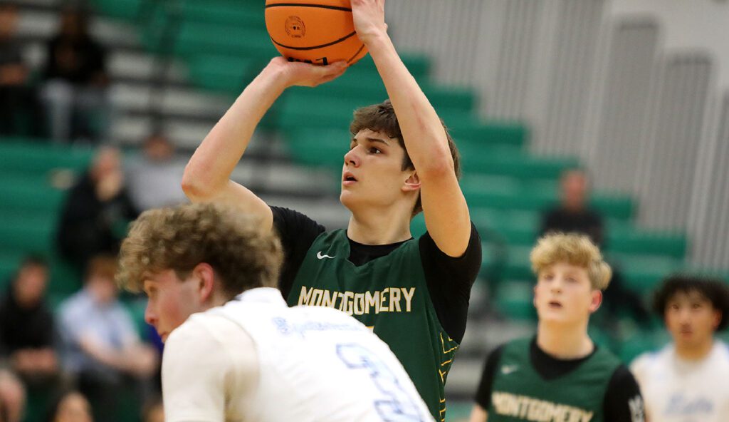 MONTGOMERY — The Montgomery girls varsity basketball team found its offensive rhythm from beyond the arc and never let go.