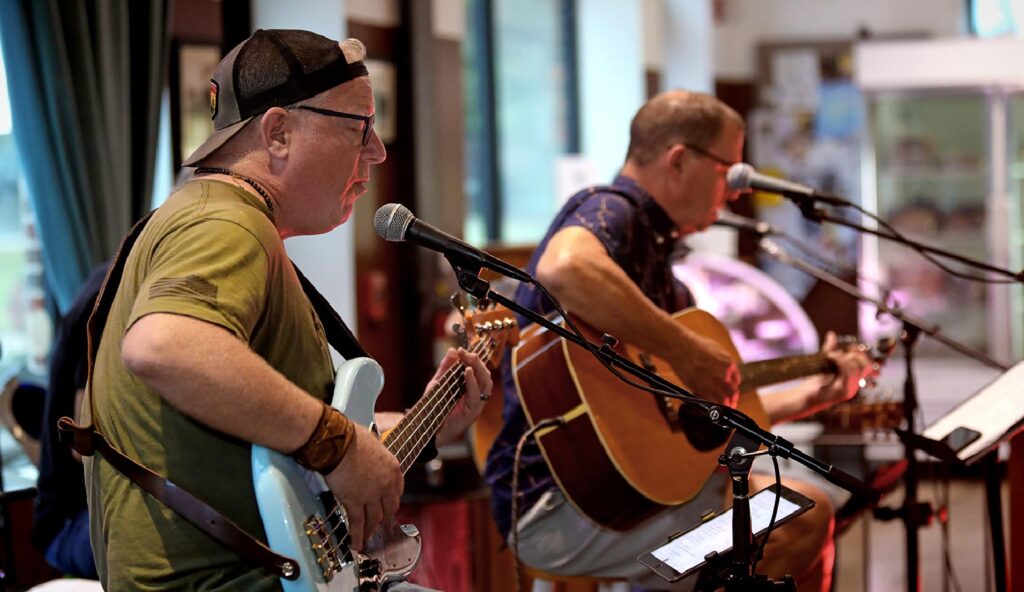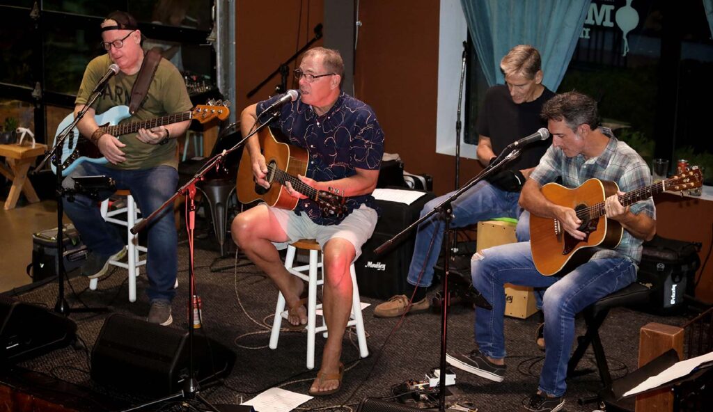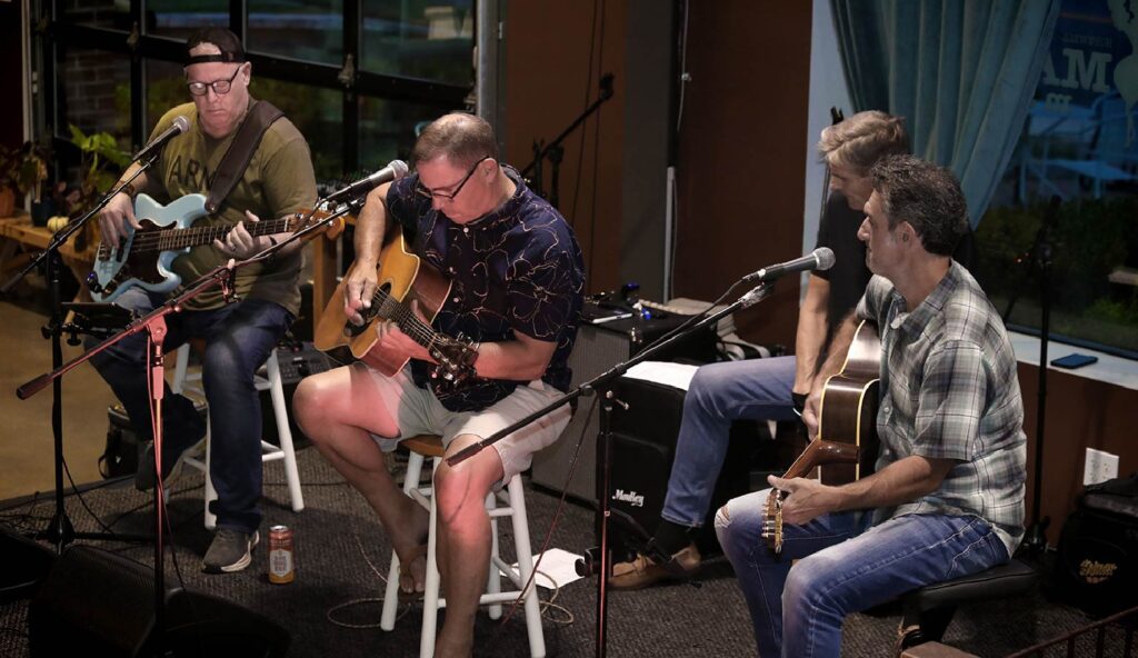 For longtime fans, seeing The Shaxe unplugged was a revelation. Founding members Doug Drake and Dan Coffey (lifelong Montgomery residents), along with guitarist Brian Quinn — whose 12-string, mandolin, and harmonica have deepened the band’s palette since joining in 2015 and Percussionist Jim Sorenson sitting in for original band member Brian Impellizari — carried the evening with an easy, lived-in chemistry.