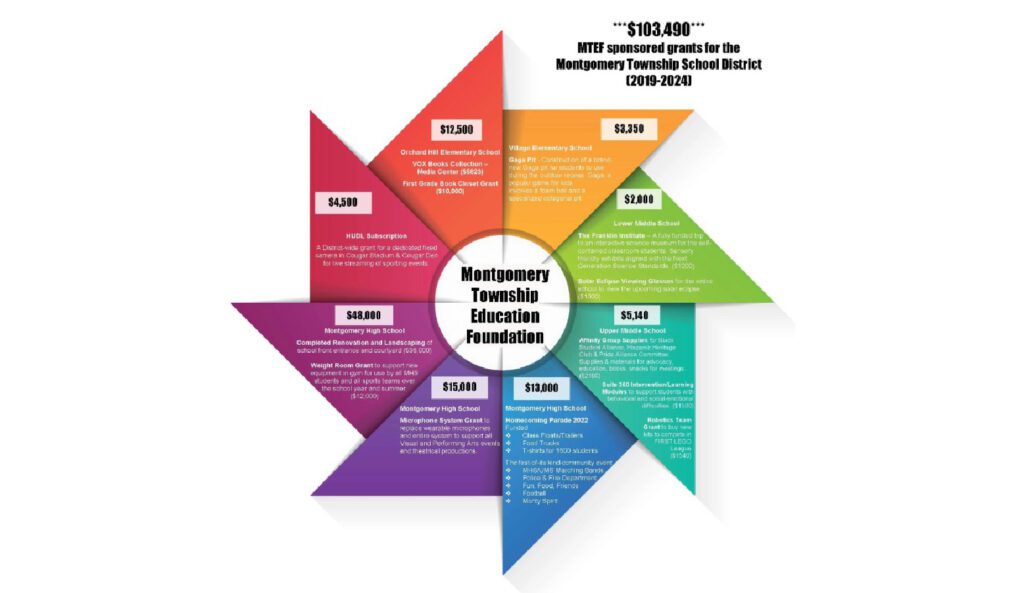 The Foundation raises money to improve students’ educational experience, acquire supplies and equipment, and support innovative teaching and learning systems across the district. From 2019 to 2024, MTEF-sponsored grants to Montgomery Township Schools have totaled $103,490, directly funding classroom projects, student opportunities, and program enhancements that would not have been possible through the regular school budget alone.