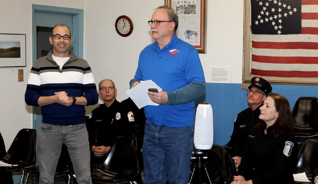 James “Murr” Murray said the funds come from proceeds raised during the event, which drew nearly 1,500 visitors to Rocky Hill. The club formally presented two checks of $3,500 each to representatives of the borough’s emergency services at the Borough Council meeting on Monday, December 8, 2025.